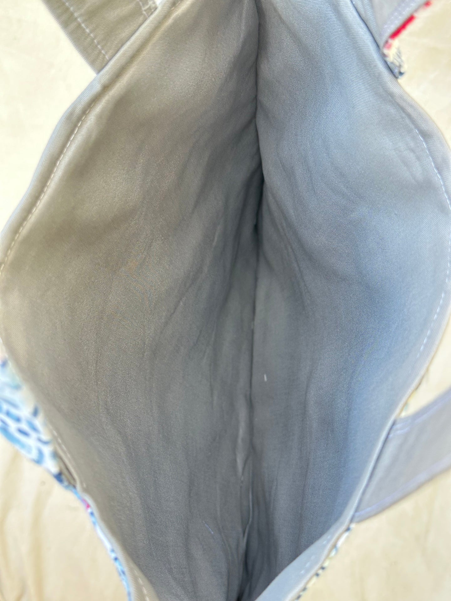 This 100% cotton tote showcases a vibrant patriotic Americana medallion print with bold colors to stand out. Its soft gray interior complements the design by blending in the handles as they extend 13" from the shoulder for easy carrying. Measuring 12" tall by 15" wide, it’s the perfect size for your daily essentials. Carry it with pride and let your spirit shine wherever you go.
