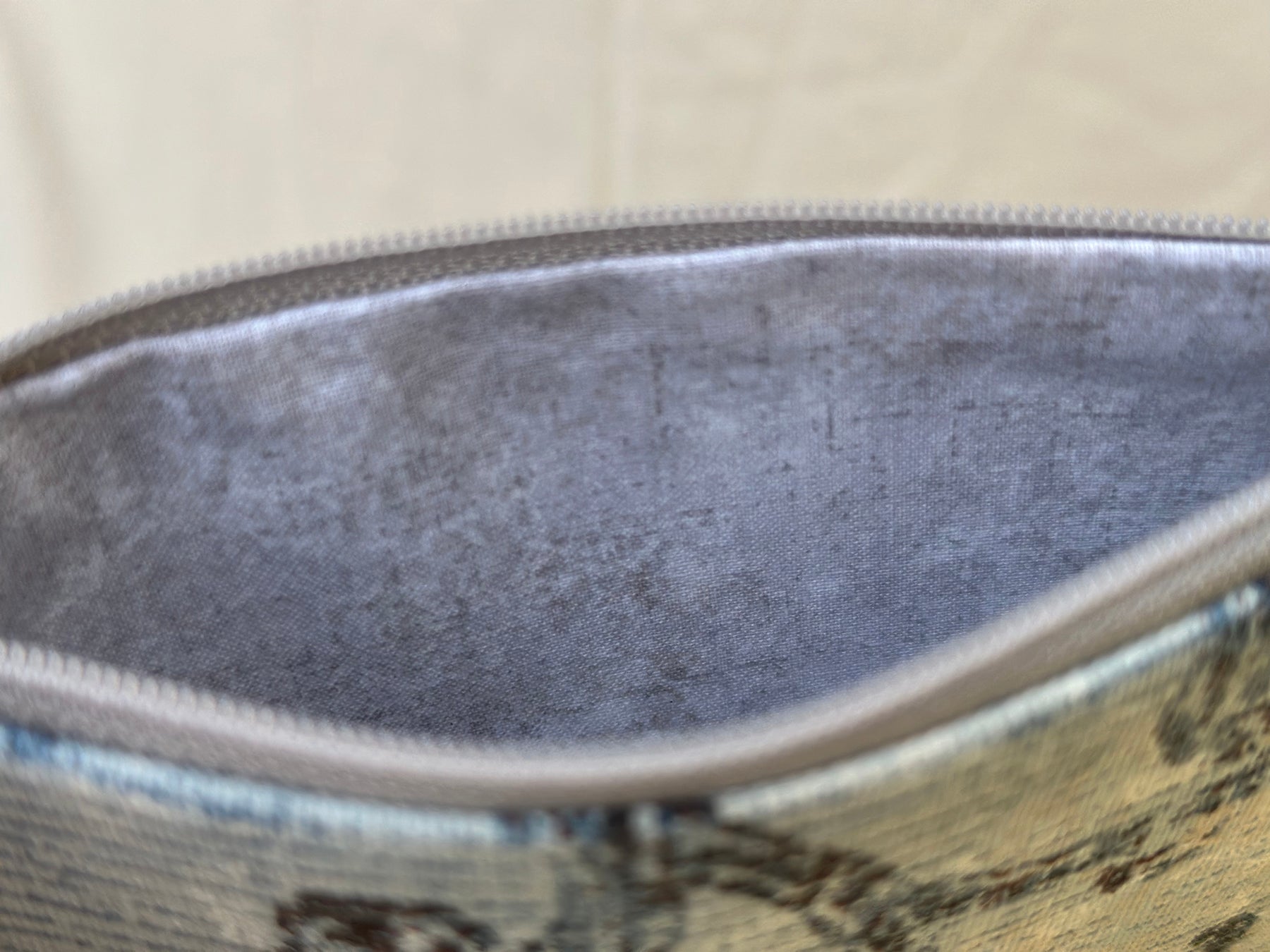 Crafted from soft cotton with a vibrant antique design, this Slimline Zip Pouch blends style and practicality effortlessly. This small pouch (7.5" wide by 4.5" tall) lays flat and fits easily inside your everyday carry bag or purse. Handmade with care, it’s the perfect companion to keep your essentials organized anywhere, anytime.